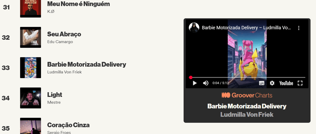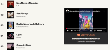 Hoje a Barbie Motorizada Delivery entrou no Groover Charts Brasil/Portugal, alcançando a posição #33.