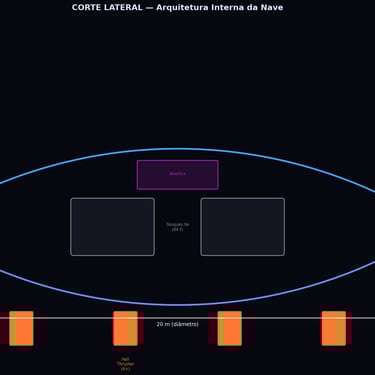 Toroid with H2O-PEG fluid and VAEL tetrahedra (primary — dimensional slip through the tetrahedron–non-Newtonian-fluid interaction phenomenon in the toroid, F = 26 MN, a = 37.5 m/s2 , ∆v equivalent ∼2.25 km/s/min, LEO ↔ Moon transit in ∼1.8 h with continuous thrust, vmax ∼ 120 km/s) + Hall thrusters (secondary — fine orbital maneuvering and backup, ∆v = 2.9 km/s), capable of LEO ↔ Moon ↔ interplanetary operation. Hull: Ti-6Al-4V.