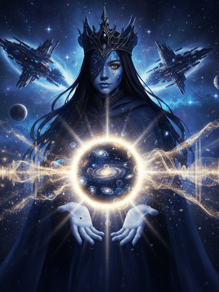 Command is not based on rank, but on vibration. Alpha Draconis was an empire of predators (Draconians and Reptilians) based on fear. Ludmilla subjugated them not with physical weapons, but with the Frequency of the Sixth Wind. Command is maintained by a "Control Symphony" emanating from her throne (and her cryogenically frozen body), making betrayal biologically painful for subordinates.